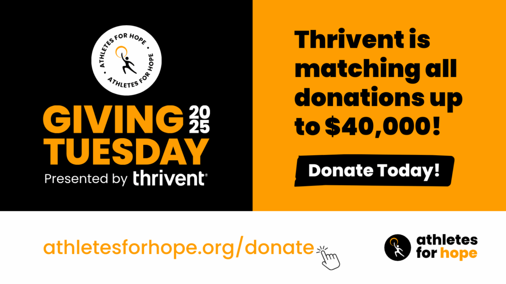 Athletes for Hope (AFH) is thrilled to announce a weeklong Giving Tuesday campaign, made even more powerful thanks to our ongoing partnership with Thrivent. From November 24 through December 2, every donation made to AFH will be matched dollar-for-dollar, up to $40,000—doubling your impact in creating athlete philanthropists and changemakers.