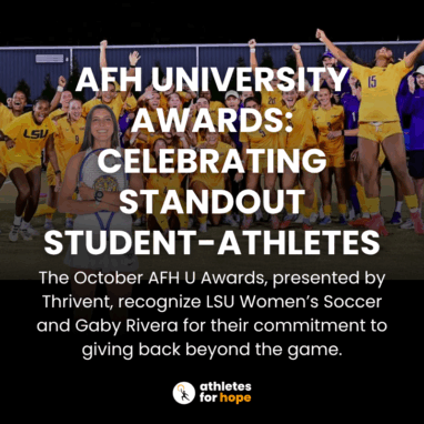 Athletes for Hope (AFH) is thrilled to announce a weeklong Giving Tuesday campaign, made even more powerful thanks to our ongoing partnership with Thrivent. From November 24 through December 2,…