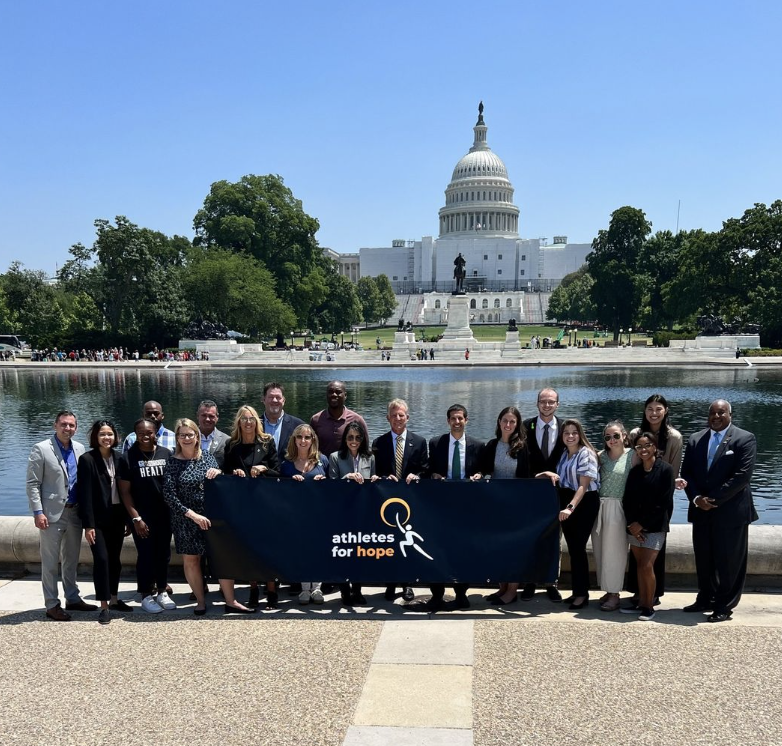 Through collective action, AMHA is working to elevate the athlete voice beyond the field and into policymaking spaces. In 2023, Athletes for Hope hosted its first Athlete Mental Health Advocacy Day at the U.S. Capitol, where athletes shared their stories directly with lawmakers—advancing the vision of a National Athlete Mental Health Bill of Rights and moving closer to mental health protections for all athletes.