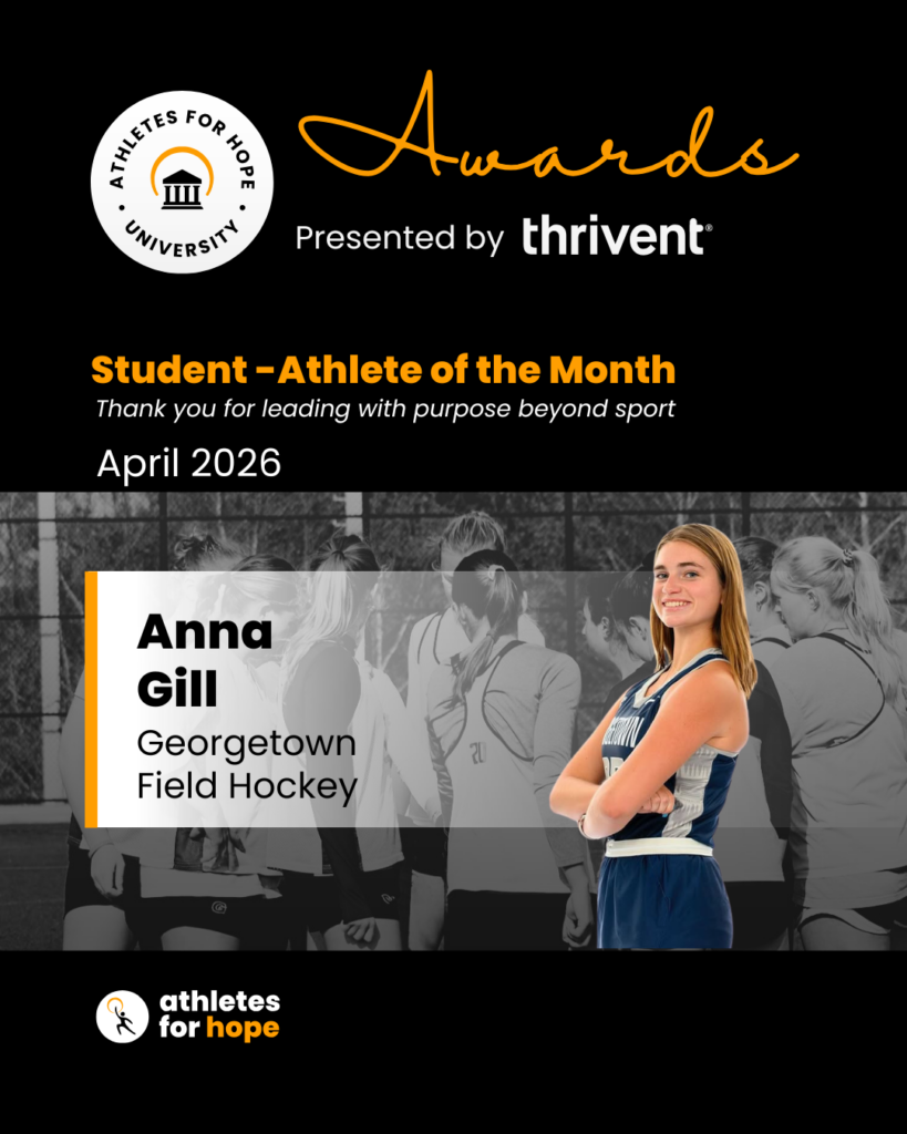 Each month, the AFH U Awards recognize athletes who exemplify leadership through service. This month, we are proud to celebrate two incredible examples of student-athletes making an impact both on and off the field: Anna Gill of Georgetown Field Hockey and the Howard University Men’s and Women’s Track & Field team.